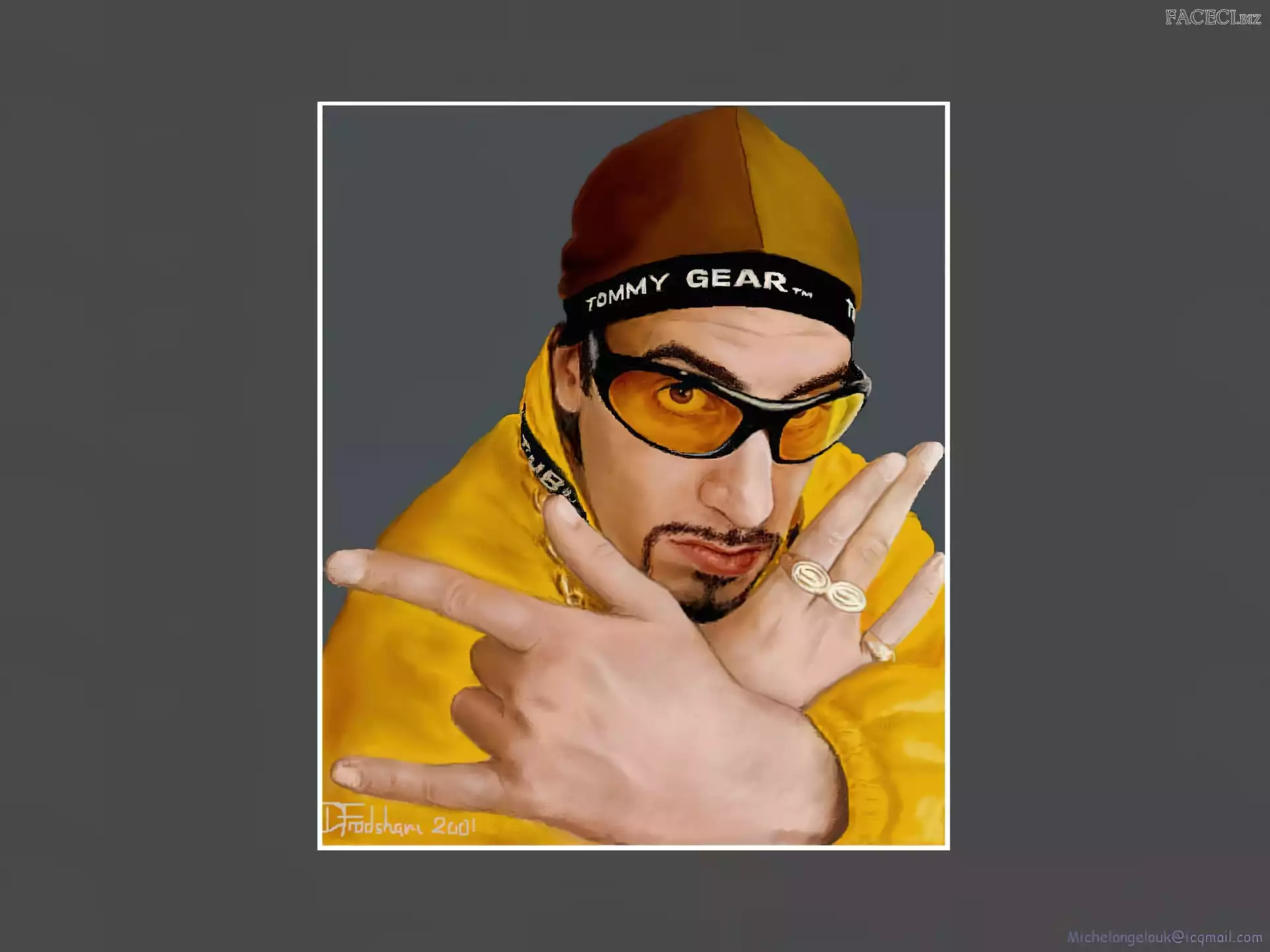 Sasha Baron Cohen, zdjęcia Sasha Baron Cohen, ali g Sasha Baron Cohen, żółty strój złoty strój, Sasha Baron Cohen, okulary Sasha Baron Cohen, gruby łańcuch Sasha Baron Cohen, borat Sasha Baron Cohen, niebieski dres